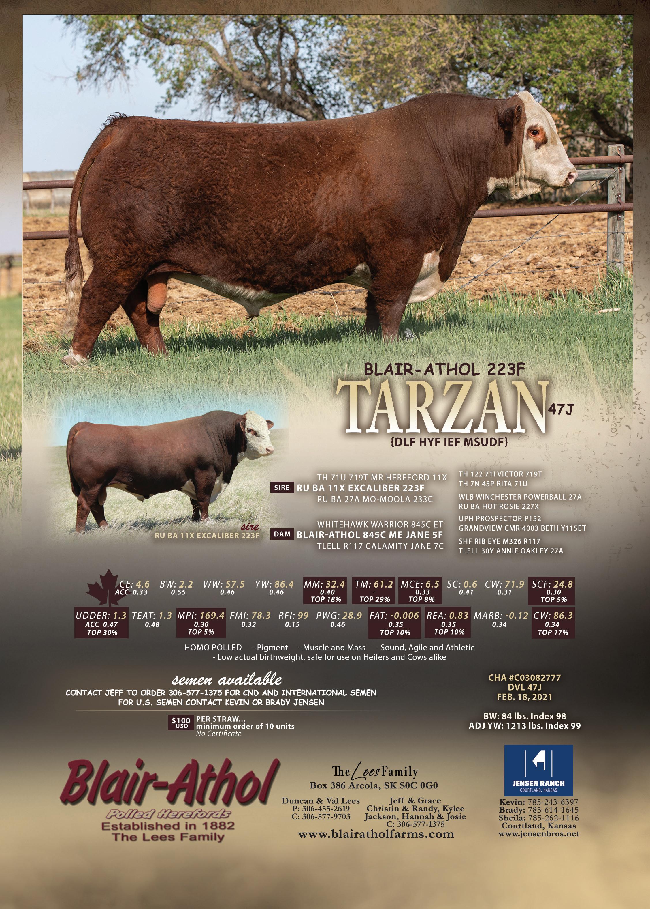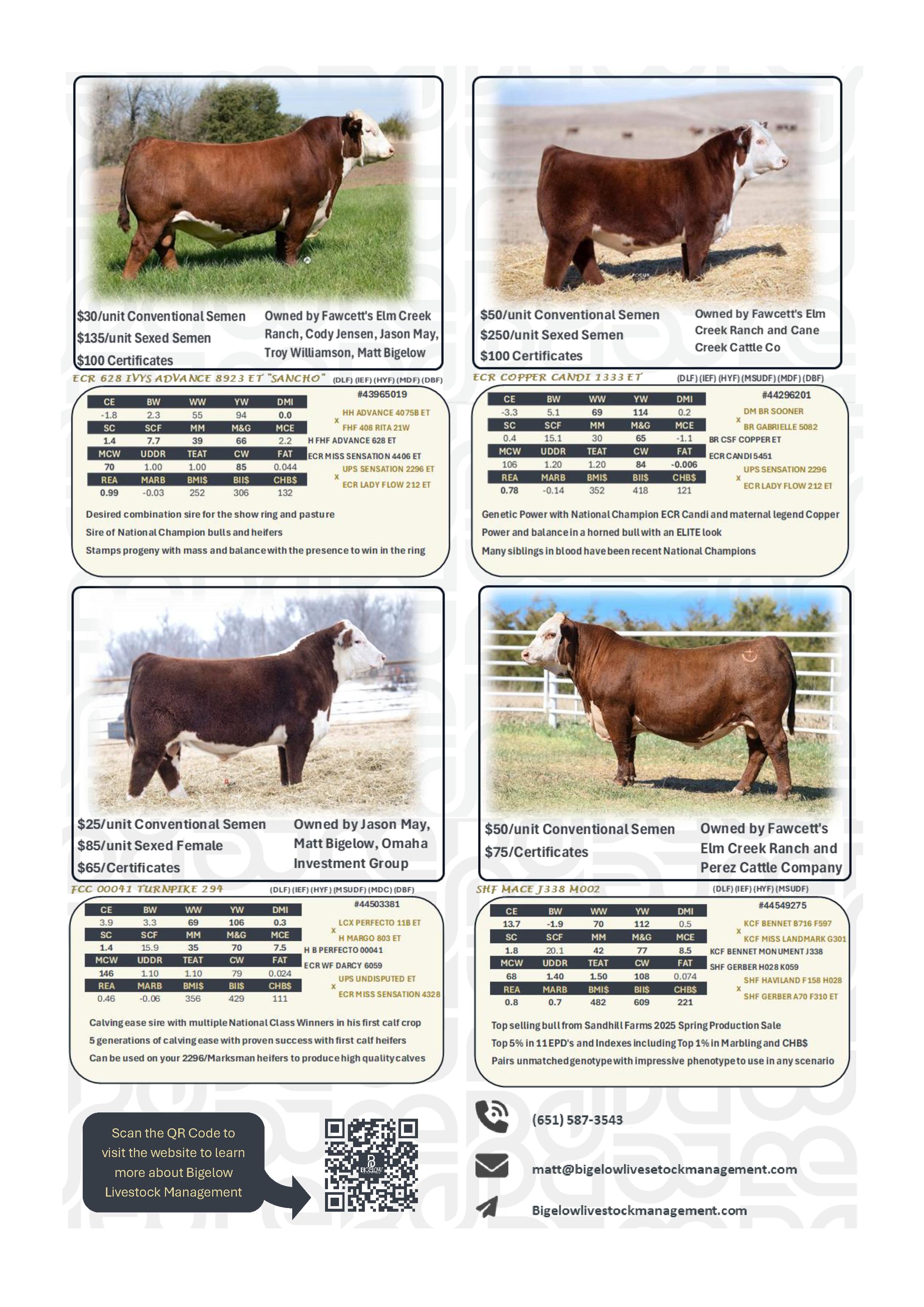 Semen: $50/Straw; Non-Certificate Contact: Fred Larson 715-495-0837