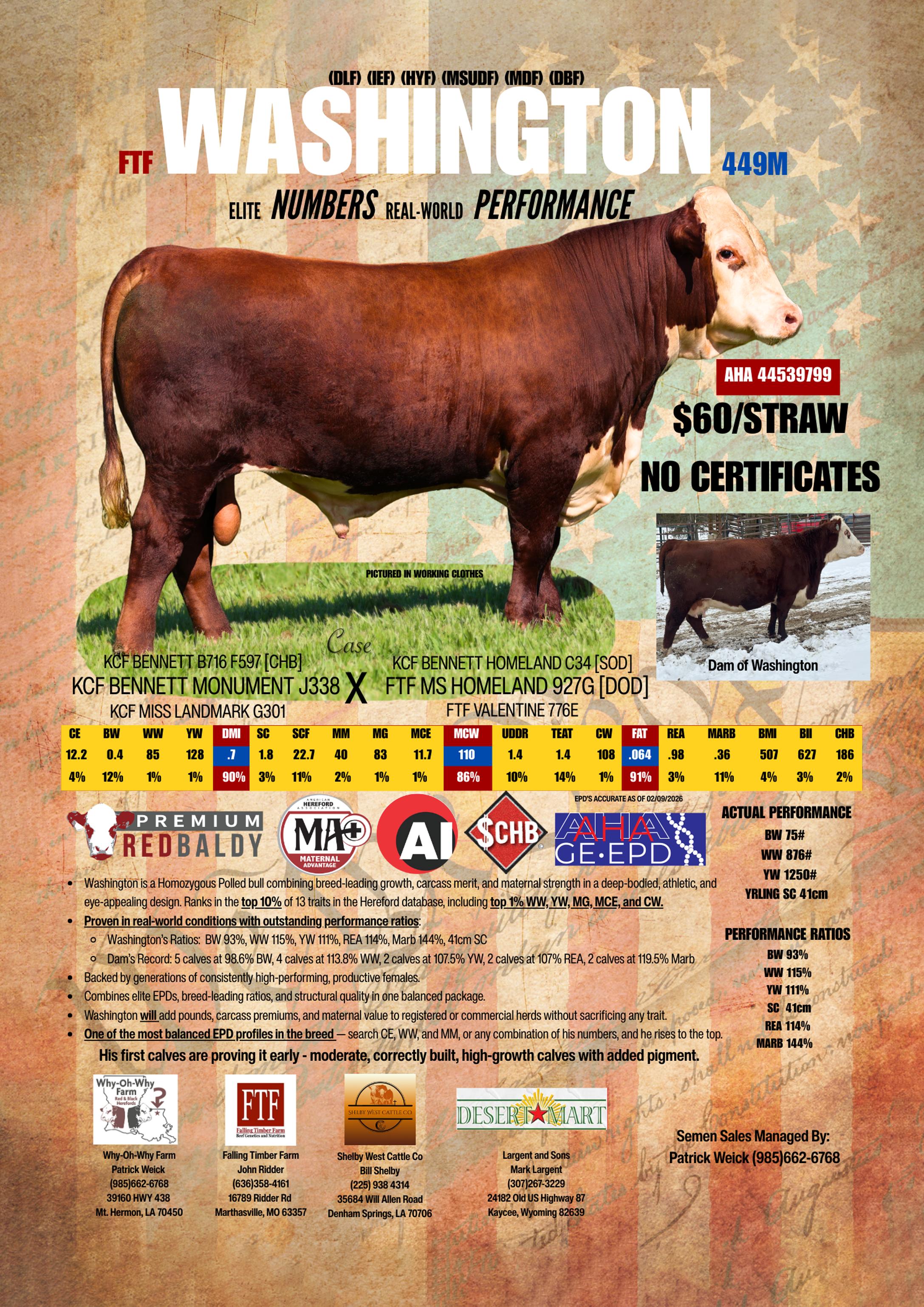 One of the best breeding bulls we’ve used in our 80+ year history. Vigorous calves that come easily Progeny are easy-fleshing and feeding