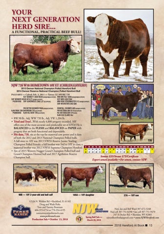 NJW 73S W18 HOMETOWN 10Y ET {CHB}{DLF,HYF,IEF} 2013 Denver National Champion Polled Hereford Bull 2014 Denver Reserve National Champion Polled Hereford Bull