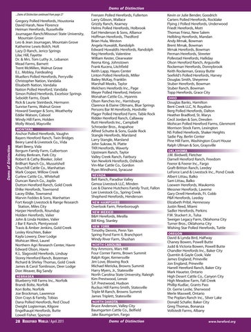 Roy Ammons, Mars Hill Four Corner Farms, Brown Summit Ralph Kiger, Kernersville Jim Love, Blowing Rock Michael Mericka, Browns Summit Harry Myers, Jr., Statesville North Carolina State University, Raleigh Kim Prestwood, Lenoir S.P. Prestwood, Hudson Ruckus Hill Farms-Smith, Statesville Triple M Ranch, Browns Summit James Triplett, Statesville North Dakota