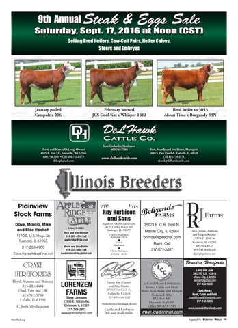 Saturday, Sept. 17, 2016 at Noon (CST) Selling Bred Heifers, Cow-Calf Pairs, Heifer Calves, Steers and Embryos