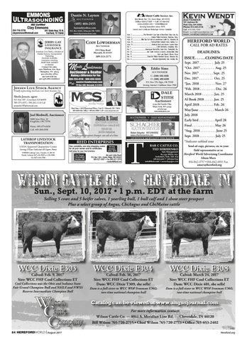 Catalog can be viewed at www.angusjournal.com For more information contact: Wilson Cattle Co. — 8911 S. Meridian Line Rd. — Cloverdale, IN 46120 Bill Wilson 765-720-2715 • Chad Wilson 765-720-2773 • Office 765-653-2402 Hereford.org
