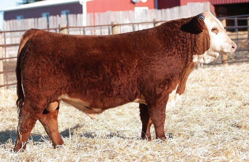 DOB 3/24/2021, by EFBeef A250 Tested F294, consigned by Greives Herefords; and an August bull calf, by Birdwell Redbird 7098 0558ET, sold to Edward Banovic, Litchfield, Ill.