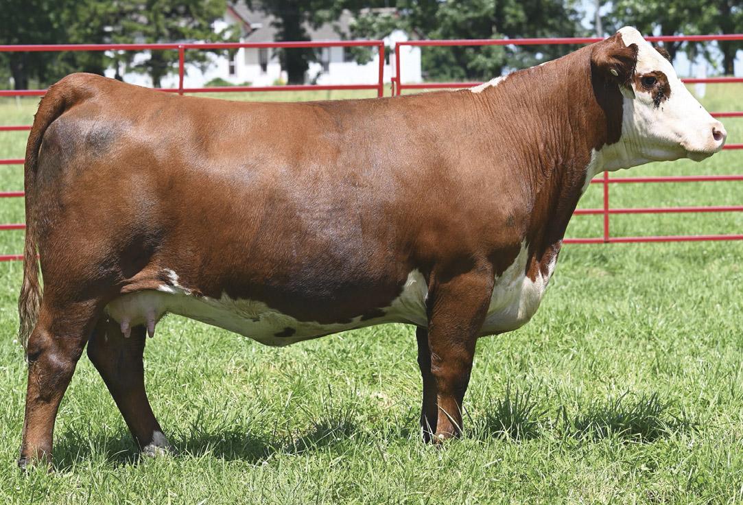 Huth foundation herd matron, pictured at 17 years of age. Vera T013 appears in the three-generation pedigree of 40 animals in this sale.