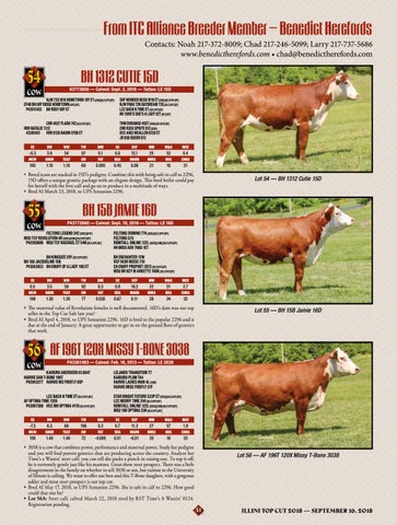 From ITC Alliance Breeder Member — Benedict Herefords Contacts: Noah 217-372-8009; Chad 217-246-5099; Larry 217-737-5686 www.benedictherefords.com • chad@benedictherefords.com