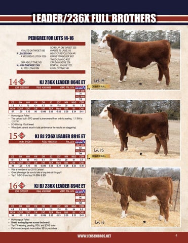 LEADER/236X FULL BROTHERS PEDIGREE FOR LOTS 14-16 HYALITE ON TARGET 936 R LEADER 6964 R MISS REVOLUTION 1009 CRR ABOUT TIME 743 KJ 618N TIMEWISE 236X KJ 122L LENA 618N