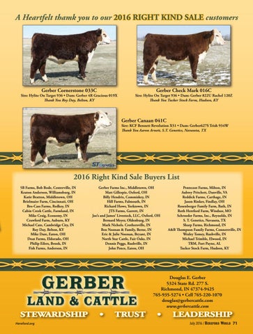 2016 Right Kind Sale Buyers List 5B Farms, Bob Bode, Centerville, IN Keaton Anderson, Williamsburg, IN Katie Bratton, Middletown, OH Brielmaier Farm, Cincinnati, OH Bro-Cass Farms, Redkey, IN Cabin Creek Cattle, Farmland, IN Mike Craig, Economy, IN Crawford Farm, Auburn, KY Michael Cate, Cambridge City, IN Roy Day, Belton, KY Mike Dare, Eaton, OH Doat Farms, Eldorado, OH Philip Eilers, Brook, IN Fish Farms, Anderson, IN