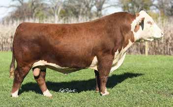• Sells with Lot 1A , bull calf born 9/28/25, sired by KRM 9160 FOLLOW ME 8G L35 ET (Reg. #P44460921), the 2024 NAILE Champion Hereford Bull. This calf is bred to have extra thickness with strong maternal genetics.