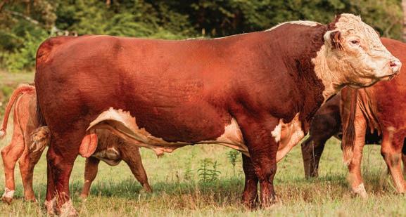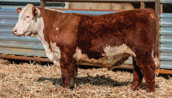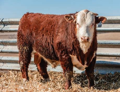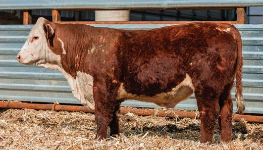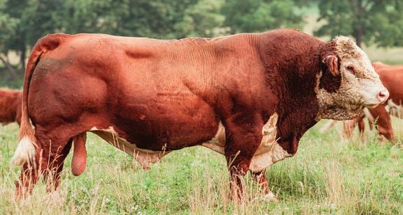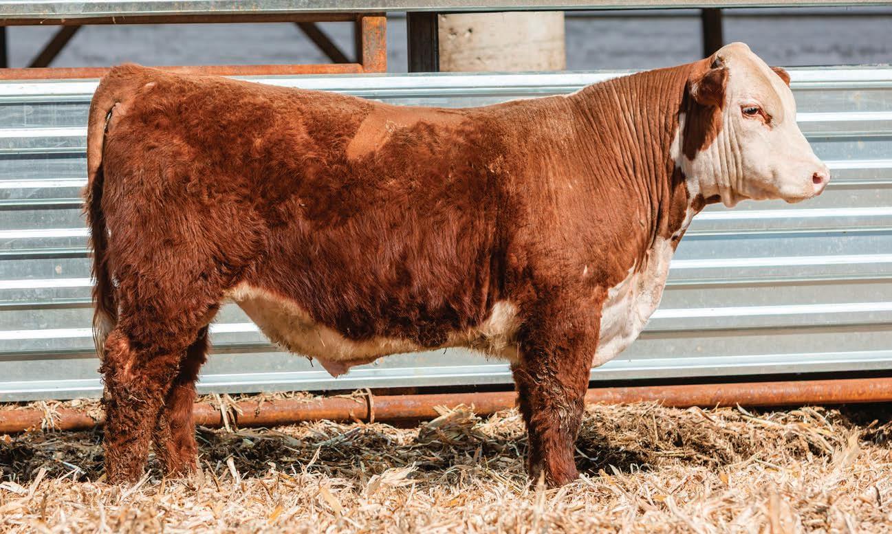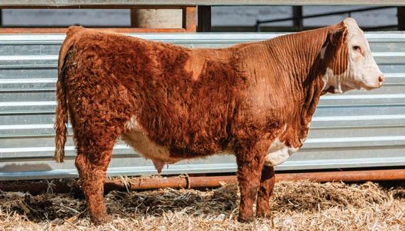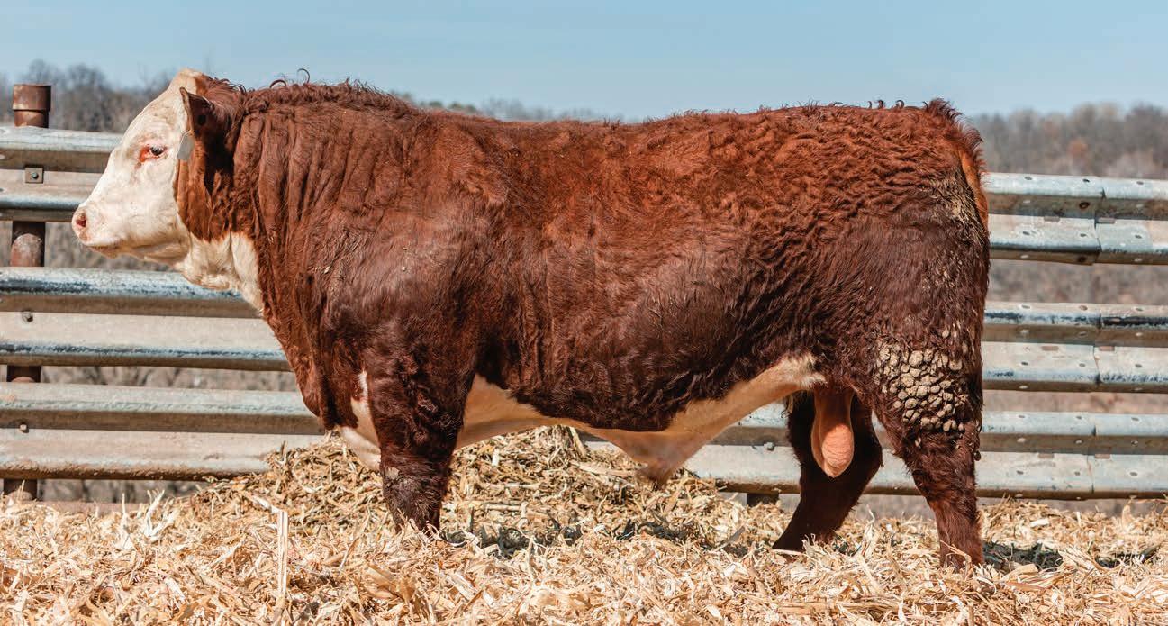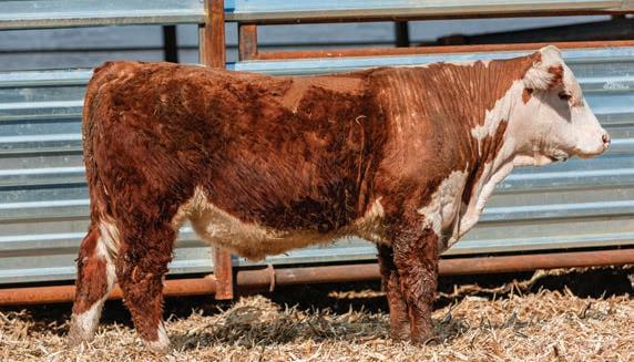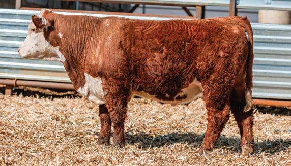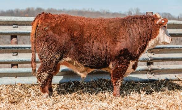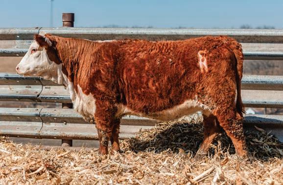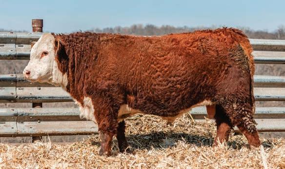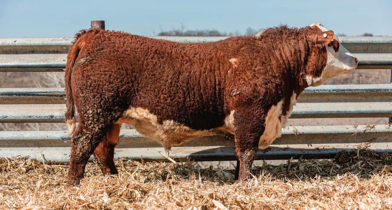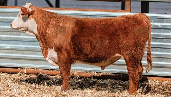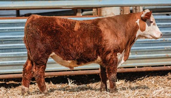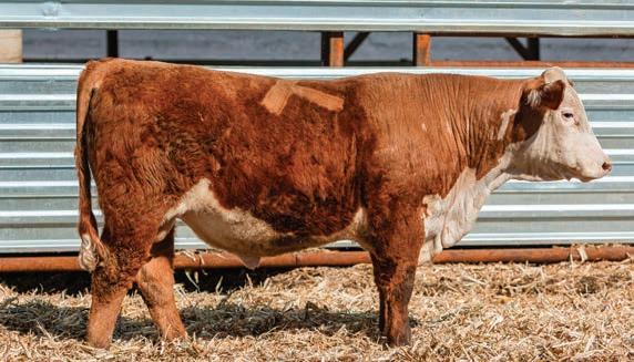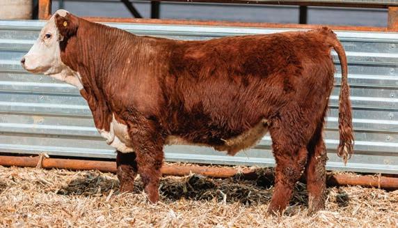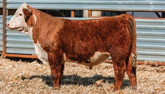 A soggy, deep sided bull that carries a big square hip. Sure to add thickness to your herd.