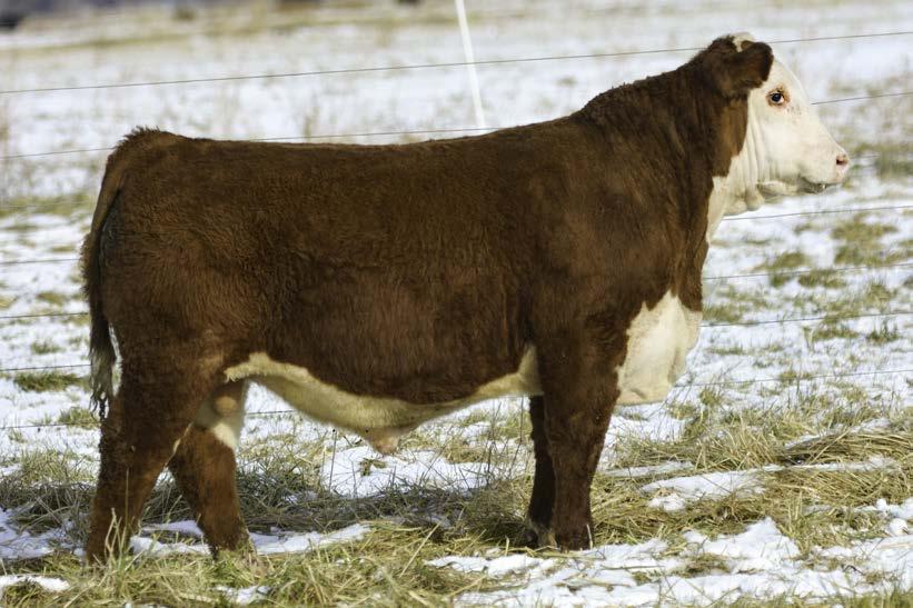 || Page 32 || HEREFORD || Spring Yearling Bulls SIRE OF LOTS 115 AND 116 | SHF Daybreak Y02 D287 ET LOT 116 | /S Daybreak 22267 ET LOT 115 | /S Daybreak 22121 ET DAM OF LOTS 115-121 | /S Lady Victor 5139C ET Spring Yearling Herefords BD: 02-15-2022 I Polled Bull 44383120 I Tattoo: 22267 /S DAYBREAK 22267 ET SHF YORK 19H Y02 MSU MF HUDSON 19H SHF DAYBREAK Y02 D287 ET LOEWEN MISS P20 10W SHF MISS M326 T08 ET KCF BENNETT 3008 M326 SHF POSTIVE MISS 73C M15 TH 223 71I VICTOR 755T DRF JWR PRINCE VICTOR 71I /S LADY VICTOR 5139C ET KBCR 19D DOMINETTE 223 /S LADY ADVANCE 8066U HH ADVANCE 286M 1ET /S LADY DOMINO 424P 116 BW ET ADG 4.28 • We lead off the spring yearling Hereford bulls with 7 sons of 5139C. She has become one of the most influential cows in our program’s history and has herd bulls scattered across the nation. She is unmatched when you combine her data, pedigree, and breeding ability. She simply never misses with any sire used. • Flush brothers sell as Lots 121, 135,