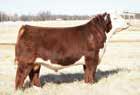 • Deep bodied and a deep dark red color this heifer is packed with muscle, volume and capacity. She blends this with a feminine neck and shoulder makeup.