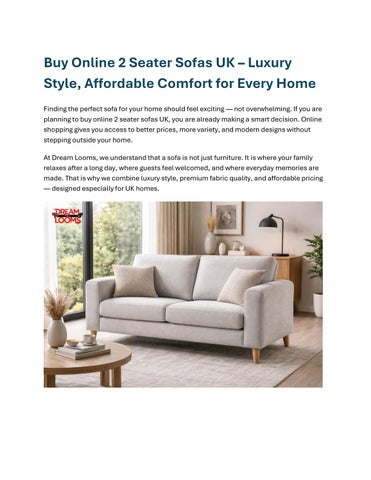 Buy sofa online in the UK with Dream Looms and find the perfect fit for your home. Choose from 2 and 3 seater sofas, corner sofas, and a wide range of fabrics and styles. Enjoy quality comfort, modern designs, and easy online ordering.