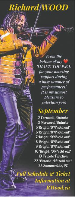 Live music on Thursdays and Fridays at 7 pm: Nick Hann (Sept 1); Kristina & Dylan (2); Kirsty Wright (8); Chris & Eric (9); Roland Beaulieu (15/29); Dave Woodside (16); Trevor Cameron (22); D’Arcy & Moe (23); Karen & Mike (30). 618 Water St, Summerside.