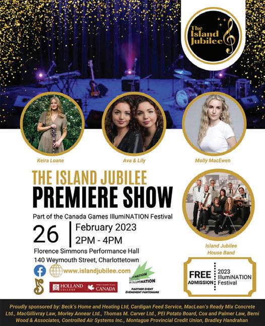 Young musicians who enjoy performing are encouraged to consider entering the 2023 Kings County Music Festival, scheduled to take place May 1–5. The Festival is one of the four local divisions of the PEI Kiwanis Music Festival Association whose purpose is to promote and encourage growth in music through local festivals in competitive and noncompetitive classes. Competitors may be recommended to the provincial music festival by adjudicators at the local festivals. This year, the Festival is returning to an in-person event. Classes are offered in piano, voice, instrumental and choral (school and community) for all levels, beginner to advanced. Guidelines, a list of classes and online entry forms are available at peikiwanismusicfestival.ca/ kings. The entry deadline is February 15. Questions can be directed to Lynda Sharp (651-2560, flynda240@gmail.com) or Anne White (838-2681, dawhite@pei. sympatico.ca).