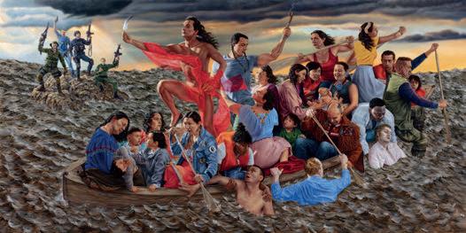 Kent Monkman (b. 1965), Study for “mistikôsiwak (Wooden Boat People): Resurgence of the People,” (Final Variation), 2019, acrylic on canvas, 107.3 x 213.4 cm (detail), Collection of the Sobey Art Foundation, © Kent Monkman
