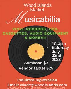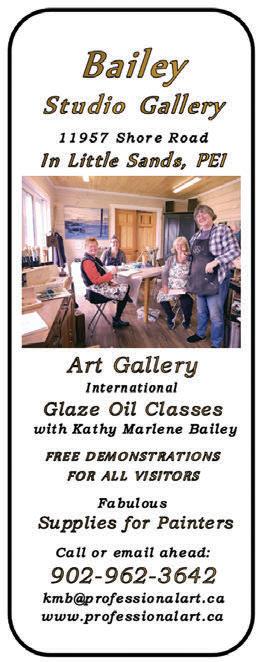 Fridays and Sundays from 1–4 pm (weather permitting): Stratton and Kays (June 28); David Woodside (30); Nathan Carragher (July 2); Shane Douthwright (7); Stratton and Kays (9); Dan Roach (14); Lawrence Maxwell (16); Jonny Ray (21); David Woodside (23); Dan Doiron (28); Julie Arsenault (30). 103 Abegweit Blvd, Borden-Carleton.