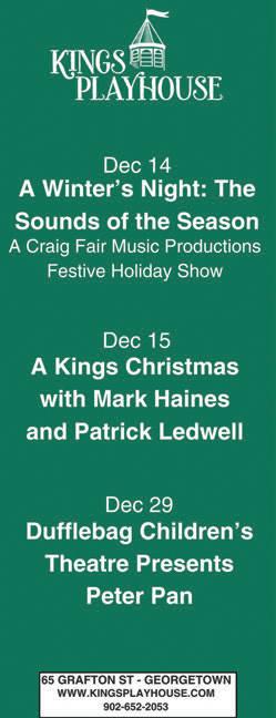 A Winter’s Night: The Sounds of the Season by Craig Fair Productions will take the stage at Kings Playhouse in Georgetown on December 14 at 7:30pm, and at Carrefour Theatre in Charlottetown on December 20 at 7:30 pm and December 21 at 2 pm and 7:30 pm. Starring Brandon Howard Roy, Kristen Pottle, Sarah Bell, Craig Fair, Morgan Saulnier, and Evan McCosham, this family-friendly show blends holiday classics and modern favourites, promising comfort and joy. Additional performances include Cole Brioux, The Smith Family, Samel Sunil, Felicity Maye, Ayanna Bellefleur, Della MacDonald, Priya MacDonald, Janelle Banks, and more. Tickets for the Kings Playhouse tickets: kinsplayhouse.com, 902-652-2053, or at the door one hour before showtime. craigfairproductions.com