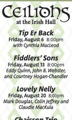 Saturdays at 8 pm. Benny Von (July 31), Brooke MacArthur (Aug 7), Nick Hann (14), D’arcy Ellis (21). 2684 PE-20, Darnley. 836-5475