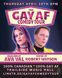 Canadian Comedy Award-winner Robert Watson, the Gay AF Comedy Tour features Just For Laughs headliner and CBC Comedy alumni Ava Val for a night of pro Queer stand-up at Trailside Music Hall in Charlottetown on April 10.