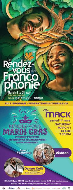 A weekly roleplaying games program at the Charlottetown Library runs on Thursdays from 5:30–8:30 pm until March 27. It is beginner friendly, and queer- and trans-inclusive. Advance registration is required. Email kels@ peeralliance.com to register. 97 Queen St, Charlottetown.