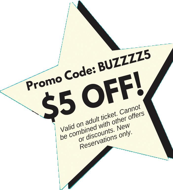 Promo Code: BUZZZZ5 $5 OFF! Valid on adult ticket. Cannot be combined with other offers or discounts. New Reservations only. April 15th-May 8th 404.895.1473 legacytheater.com JUNE 30JULY 30