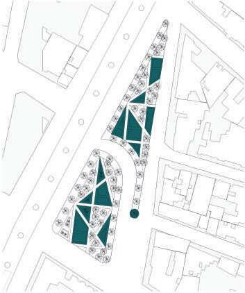 Configuración de espacios públicos con espacios verdes en los centros de manzana de uso residencial