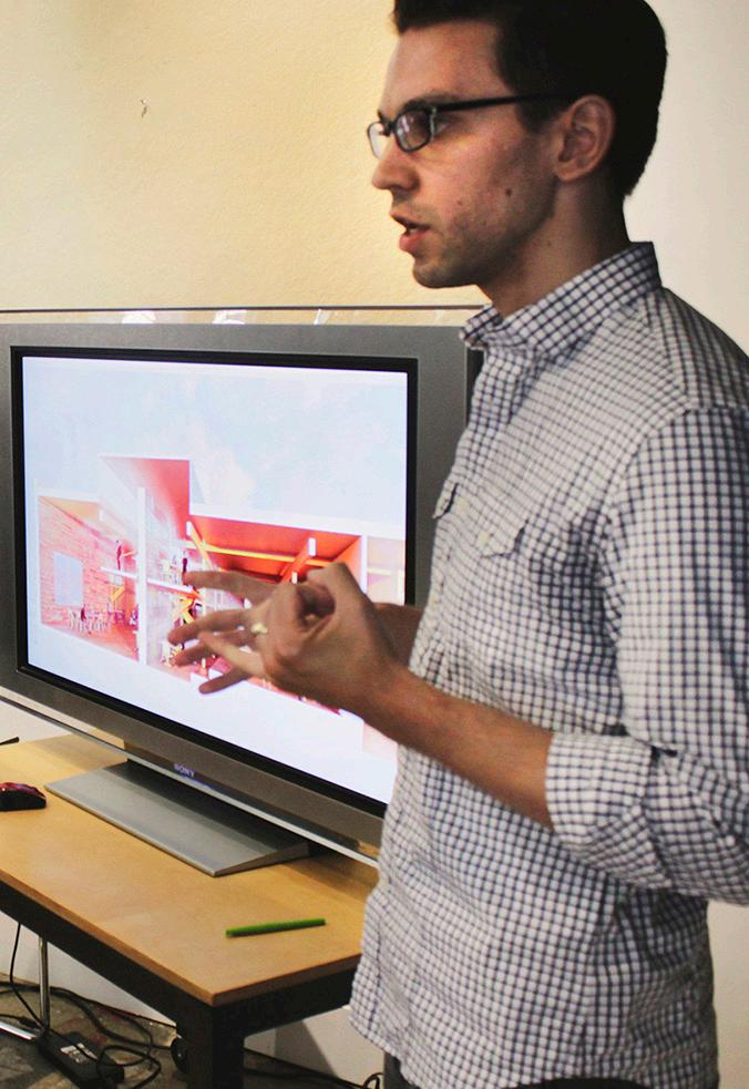 Designers Kaitlin Frankforter, Brittany Coudriet, and Ryan Hier, AIA, present their final proposal to the client.
