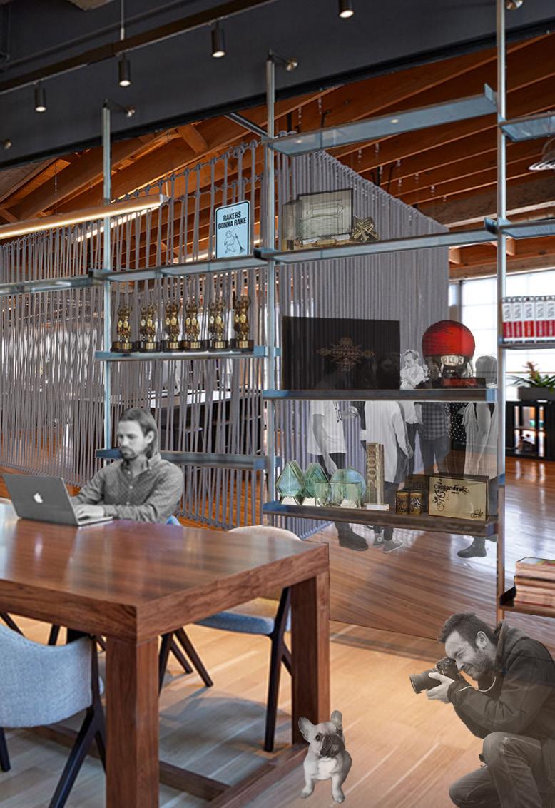 For Archrival, the youthful and creative nature of their agency has led to the accumulation of a number of chotchkies representing their individuals and the collective. Rather than leave these items unorganized throughout the studio, why not curate them through the design of a wunderkammer? Displayed in multi-compartmented cabinets and vitrines, arranged to inspire wonder and stimulate creative thought, the wunderkammer celebrates the unique culture by curating the studio with personal objects. Workstations organically emerge from the wunderkammer and “jam spaces” locate themselves around the perimeter, facilitating chance encounters and create a dense layering of people, allowing creative energy to permeate the studio. Curating opportunities for open, semi-open and enclosed work spaces, the design accommodates different working styles while personalized objects, and unique personalities creates the f’n awesome wunderkammer.