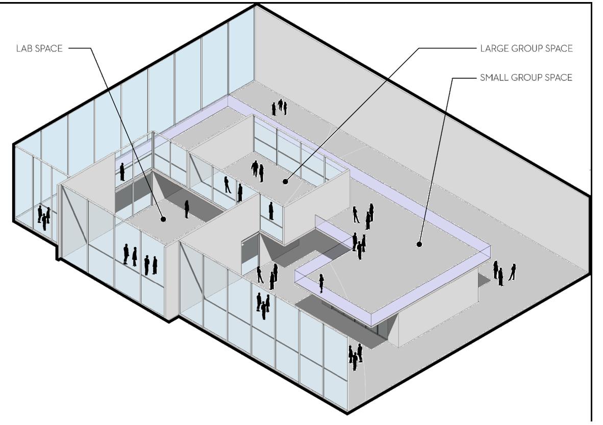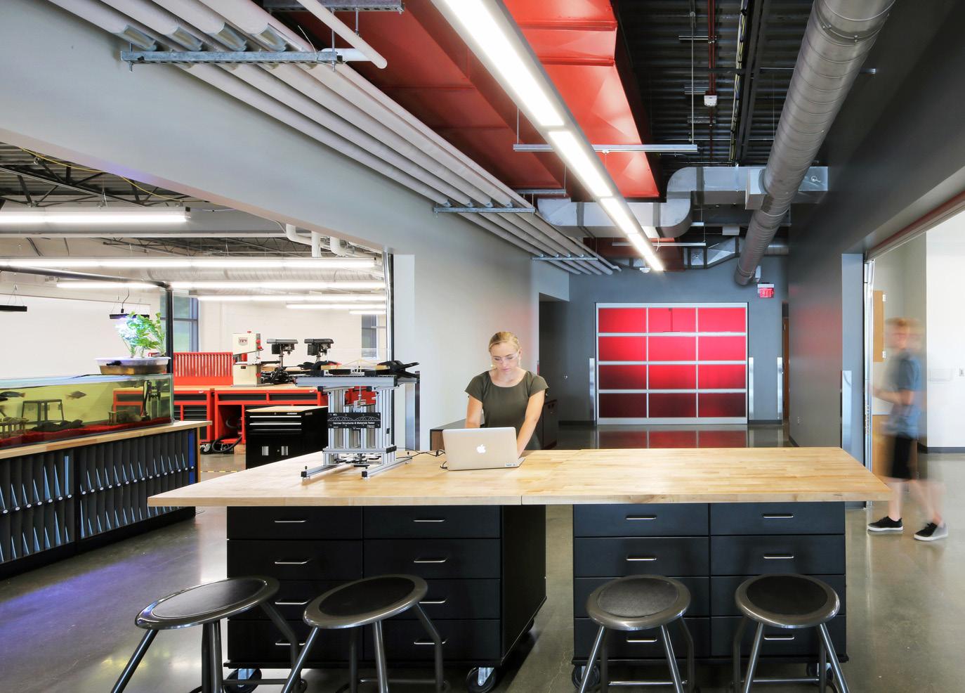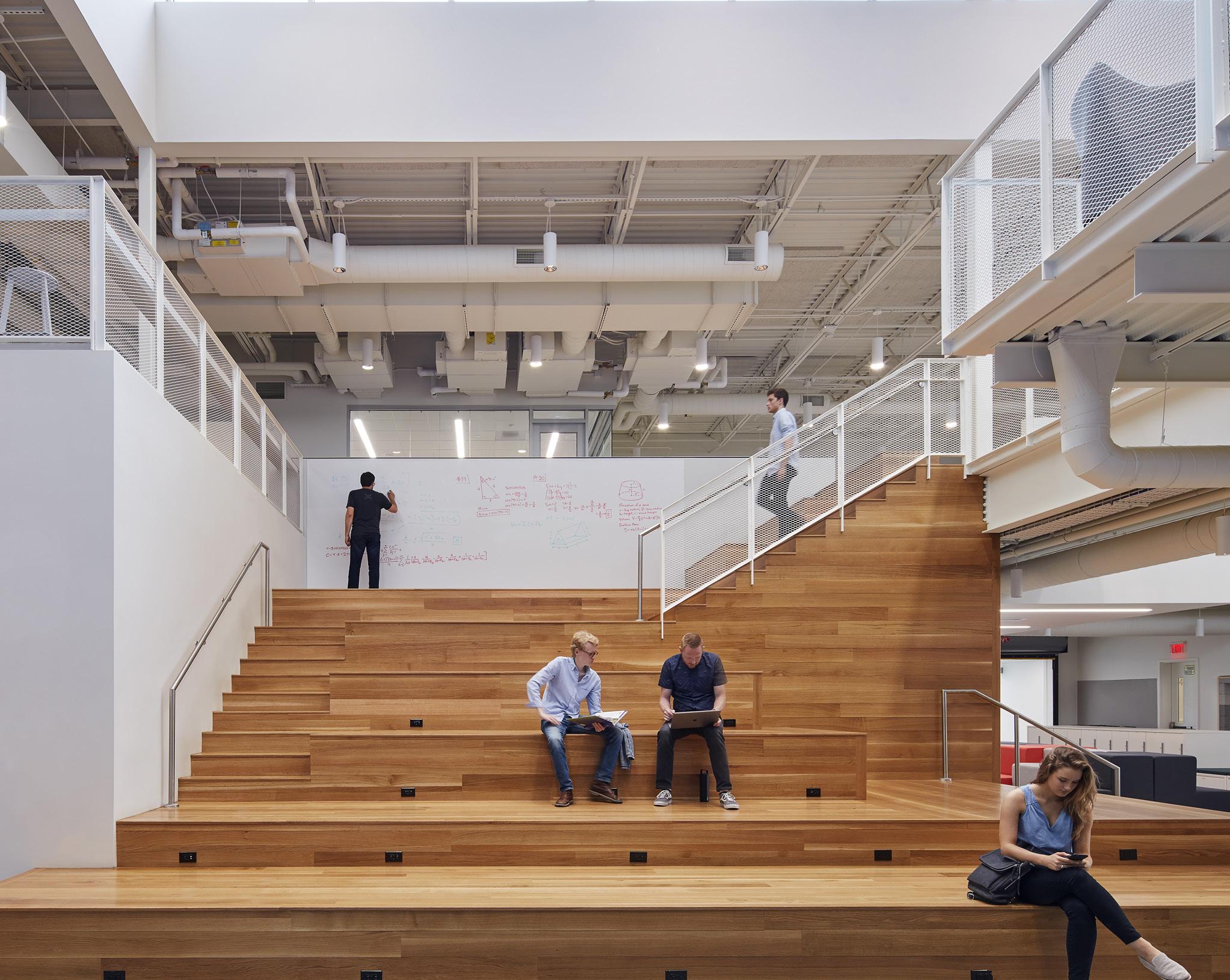 The vast amount of choice given to students is reinforced by the physical proximity and overlay of spaces. Classrooms provide views into labs, with adjacent lounge and public spaces giving room for personal and group study. This layering of space provides numerous opportunities for ‘chance encounters’—unplanned interactions that initiate new thinking, expose students to new or divergent interests, and help build new skills through crosspollination.