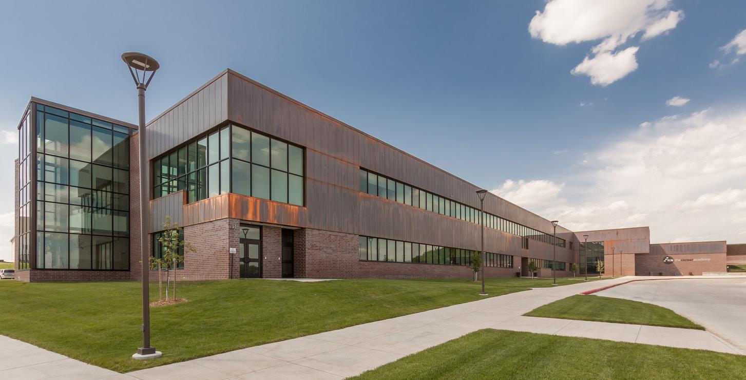 The Career Academy is a joint venture between Lincoln Public Schools and Southeast Community College that provides 550 high school juniors and seniors the opportunity to pursue studies in 16 different career pathways. The 115,000 sf facility is located on the SCC campus where students attend either morning or afternoon sessions unique to their individual career pathways apart from their home high school coursework.