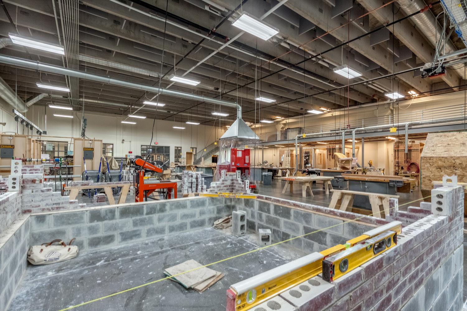 The two-story building is organized around an open naturally day-lit commons that emulates the main street marketplace with each career pathway having store frontage on the commons.