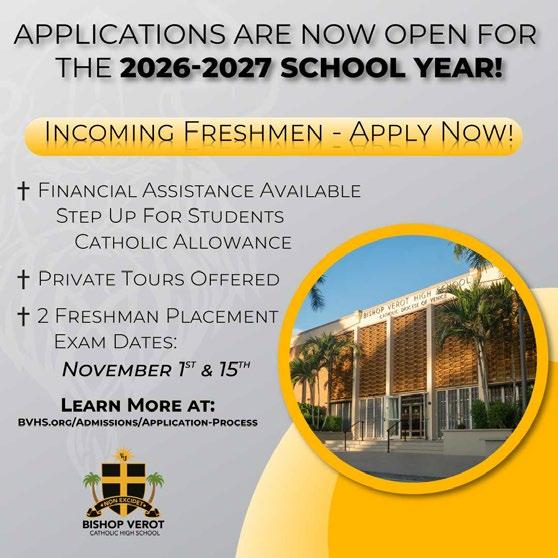 Lastly, Freshman Placement Exams are being offered in November for the next group of freshmen beginning in the 2026-2027 school year. If you or someone you know has an 8th grader, do not miss this chance to join the Verot family! Check out the ad on page 6 for more information and the link to set up a private tour and apply. It’s time to be a Viking!