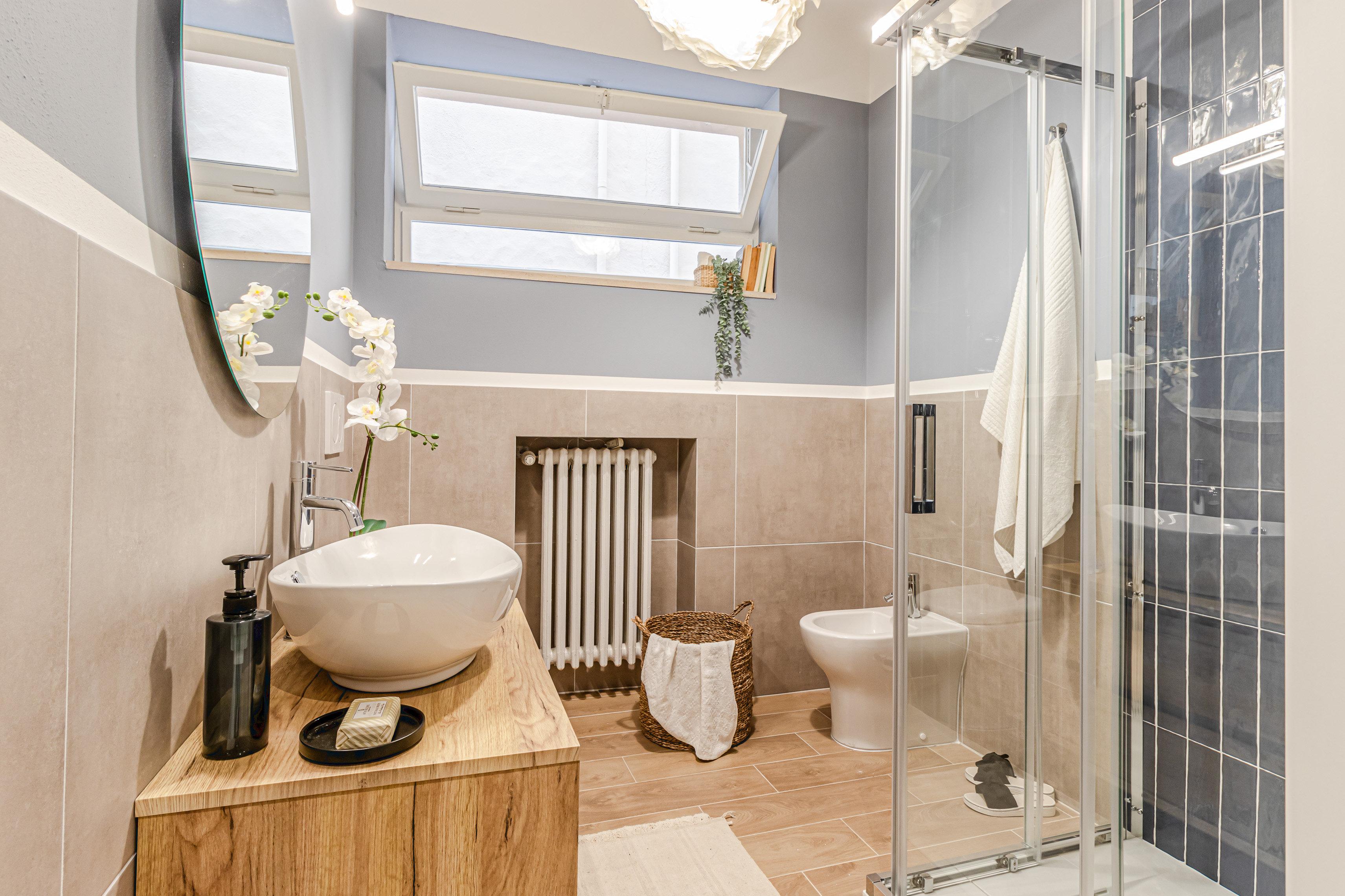 questospaziocupo.Ilbagno,datato,presentava unaltorivestimentoinpiastrelleormaidesueto. Sièsceltoquindidiristrutturareconmaterialie finiturecontemporanee,perrenderel’appartamentoappetibileeprontoall’uso.Quantoalla cucina,postanellazonaliving,l’Arch.IlariaMari hasceltodiposizionarneunatemporanea,per