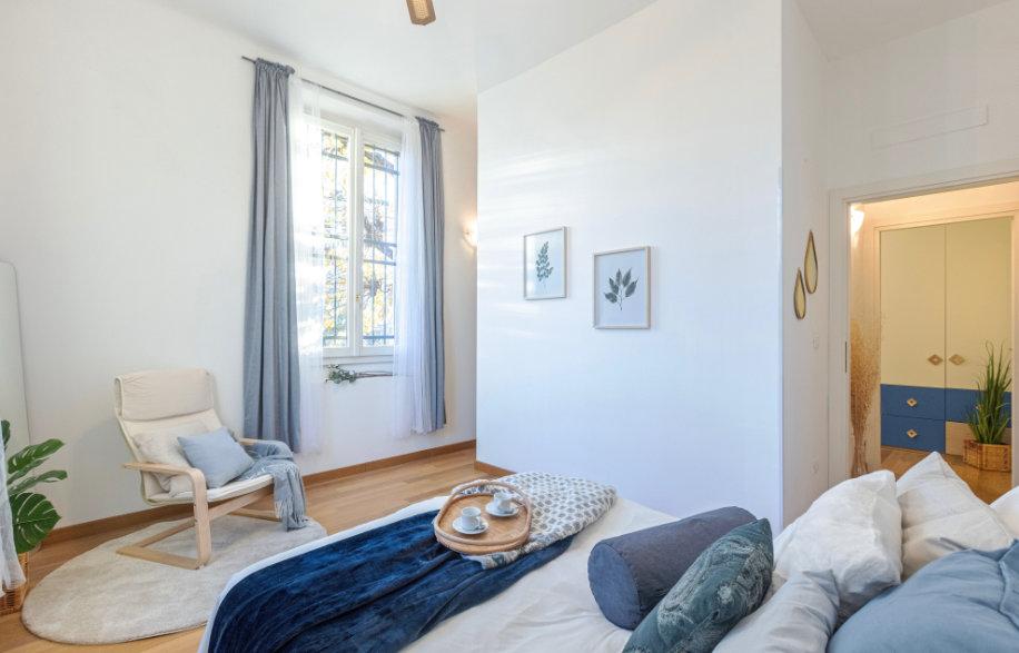 “Lamiarichiesta –raccontal’homestagerPRO HomeStagingLovers CostanzaBeghelli - èstata quelladiaverel'appartamentoimbiancato,pulitoevuotoeconl’elettricitàattiva.Cosìèstato. Puntofortedell'appartamentoèunabellissima lucegrazieallapresenzadifinestreesoffittialti finoltrei3metri,tipicideglianniincuiilpalazzo fucostruito.