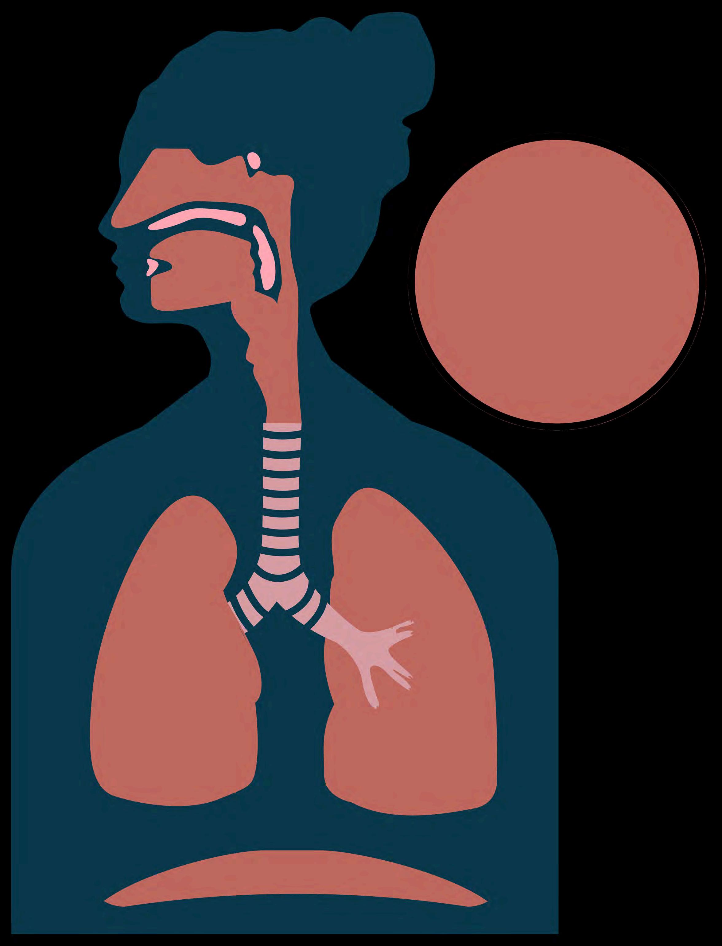 When you breathe, you bring in air through your nose which travels down your windpipe (the ‘Trachea’),throughthevoice box (the ‘Larynx’) and into your lungs. Because your lungsgetbiggerwhenyou breathein,amuscleunder your lungs, called the diaphragm, goes down to make more space for the air.