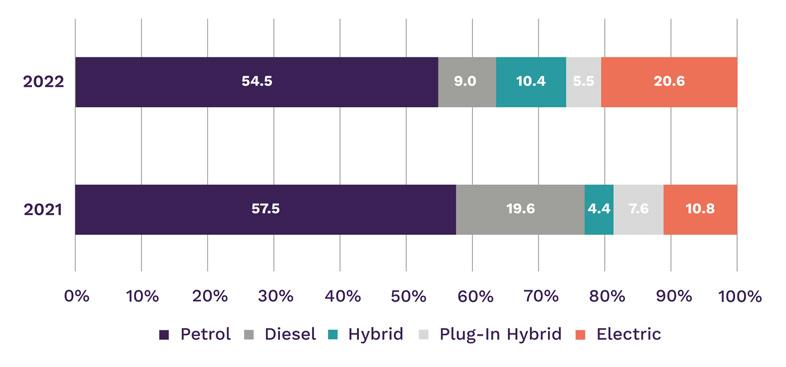 Graph 1: New Car Fuel Type Demand – Q2 2022 versus Q2 2021