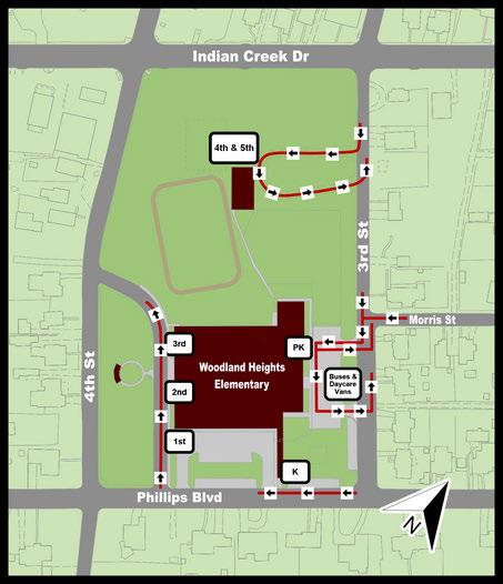 Busesanddaycarevanswillpickupinthebackbusloop.Buses/vansshouldenterfrom3rdStreet,circlearoundandexitLEFTon3rdStreetand proceedtoIndianCreek.
