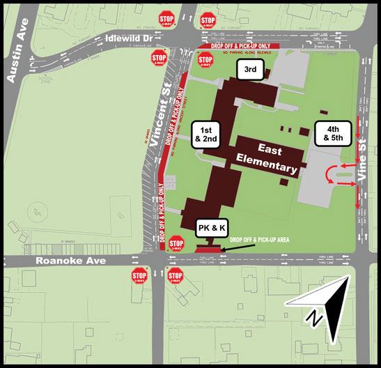 Pre-K and Kindergarten students are picked up at 3:20 on Roanoke. 1st and 2nd grade students are picked up in front on Vincent at 3:20. 3rd grade students are picked up on Idlewild at 3:20.