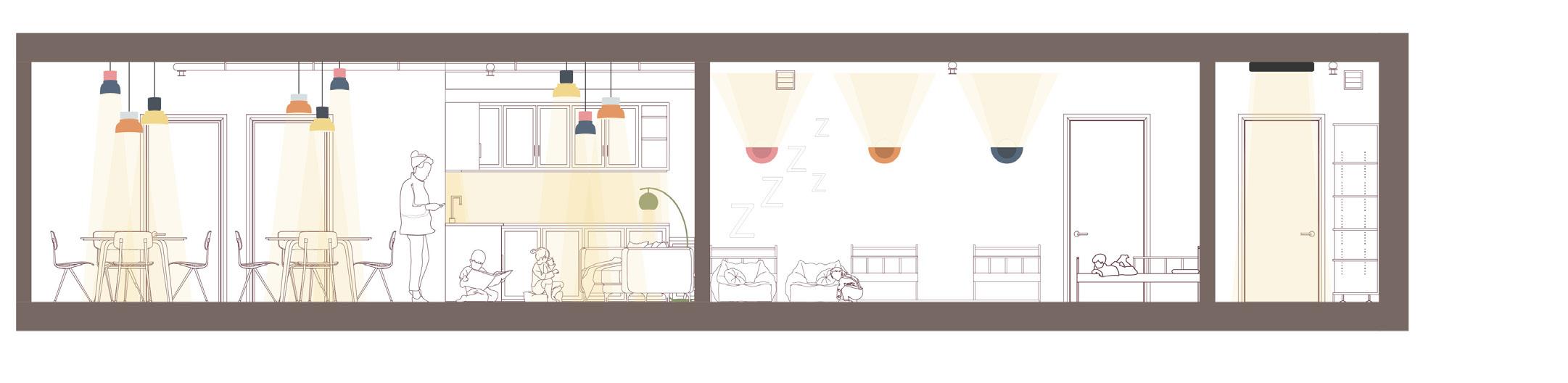 The design prioritized the creation of a safe, nurturing, and community-oriented environment for single women and women with children, offering longterm housing and fostering connections among residents through shared spaces and supportive programming. A child-centric approach guided the spatial organization, ensuring environments that promote individual growth, development, and a strong sense of home.