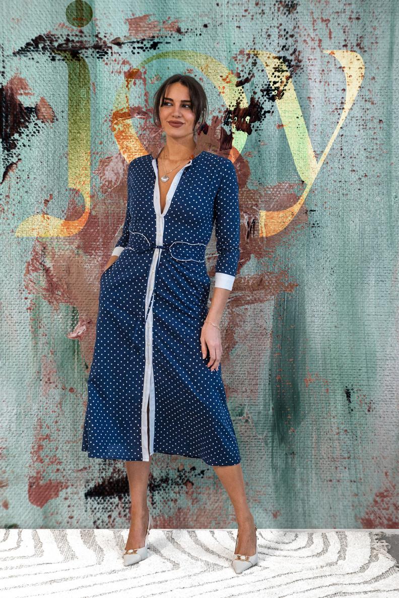Joy is our modern twist on a wardrobe classic. This versatile dress is ideal for desk-bar days. Fully lined, chic three-quarter sleeves and a quilted tie belt.