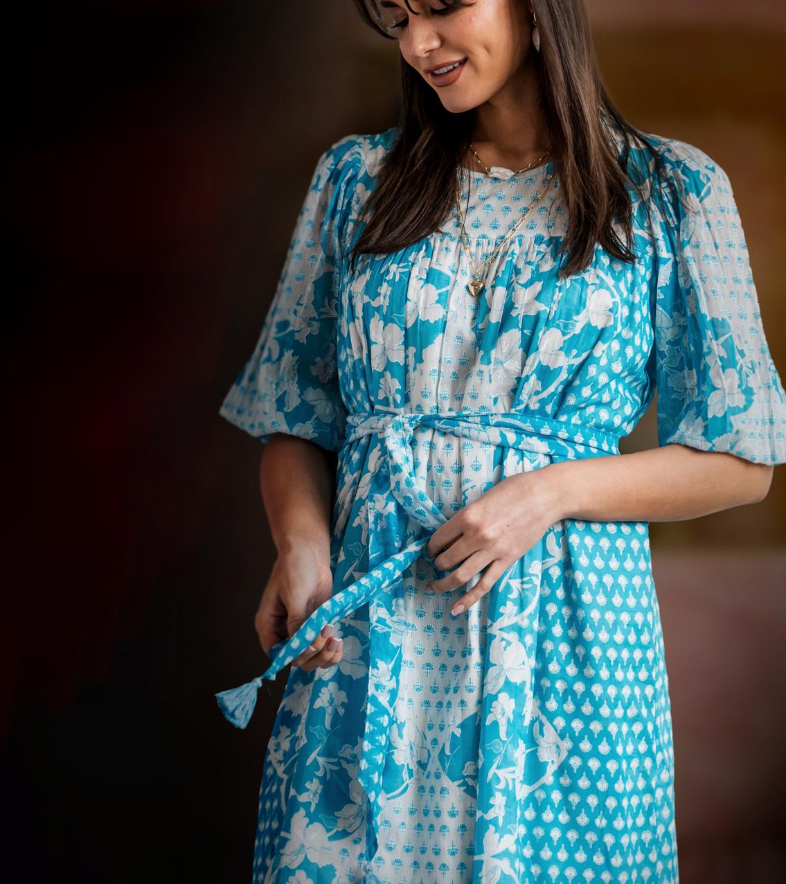 Aurora is our brand new Premium cotton sundress in a sunshine-soaked bespoke print.