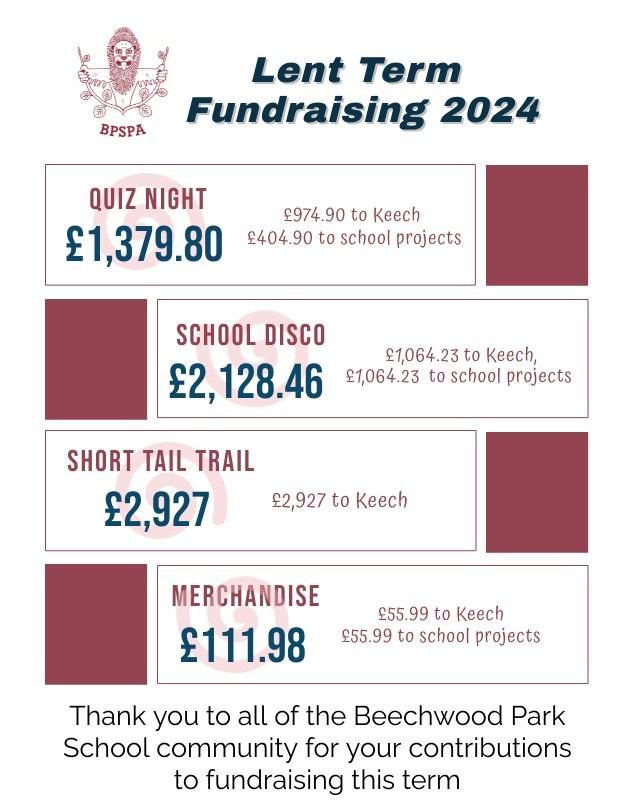We have lots of fun to look forward to next term: Picnic on the Lawn (for children, parents/ guardians and staff), the Summer Ball (for parents and staff), Fun Night (for the Beechwood Park community) - and the ever popular BPSPA ice lolly stall on Fridays after half term. In the process, we’re hoping to continue to raise money for important causes next term We’ve totted up what you helped raise through BPSPA activities this term and amazingly it comes to over £6,500 Thank you!