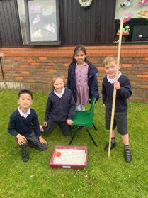 Linked beautifully to our maths topic of measure, thechildrenalsousedtheirDTskillstocreatepaper rockets which they propelled using a straw before measuring the distance travelled in metres and centimetres. Would launching from a sitting, kneelingorstandingpositionmakeadifference?