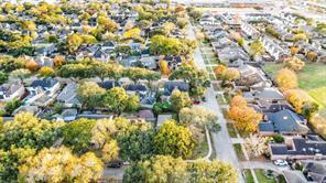 An alternate aerial view capturing the size and prominence of this desirable treed corner lot.
