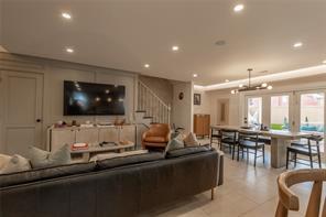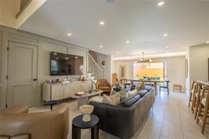 The inviting family room overlooks the meticulously maintained backyard and flows seamlessly to the kitchen, creating an ideal space for everyday living and entertaining.