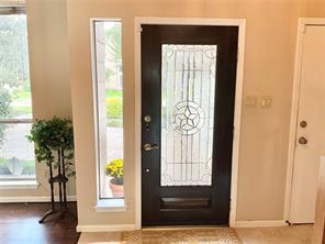 The welcoming interior entry is highlighted by rich wood-look laminate flooring and windows that invite in natural light.