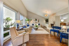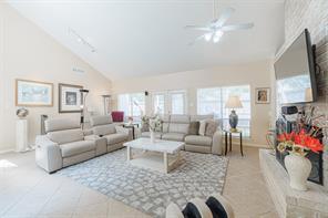 An alternate view of the family room with wall of windows overlooking the beautifully landscaped backyard.