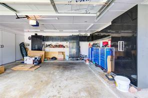 The oversized two-car garage is equipped with an EV charging station and a LiftMaster garage door opener, while the home also features a Rachio smart sprinkler system and leaf-guarded gutters throughout.