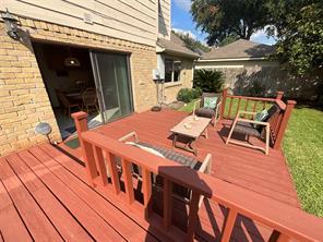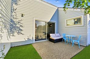 An alternate view of the back patio showcasing the glass sliding doors to the primary bedroom.