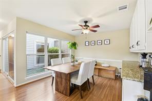 An alternate view of the breakfast nook open to the kitchen and family room.
